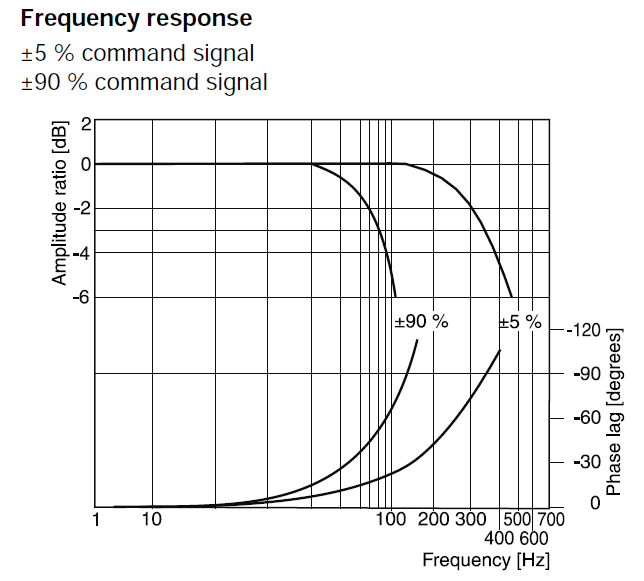 來看一個實際的樣本,以派克漢尼汾的D1FP比例伺服換向閥為例,其頻率響應特性曲線如下: